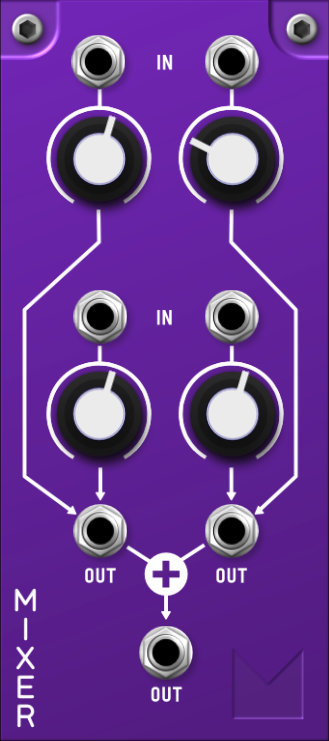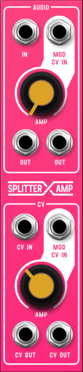 This module lets you split a single signal in to two. The ampletude of the signal can be changed with the knob and/or a cv signal