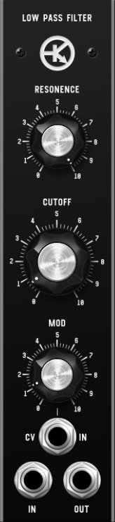 Resonent lowpass filter. Can take a cv to contol cutoff. This filter has a growling quality to it.