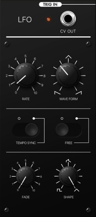 Controls for rate, adjustable slope/pulsewidth, tempo sync, one shot or free and fade in.