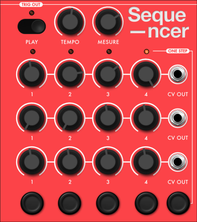 This is a four-step sequencer which outputs cv signals. You can trigger individual steps or have them run in sequence via the clock.